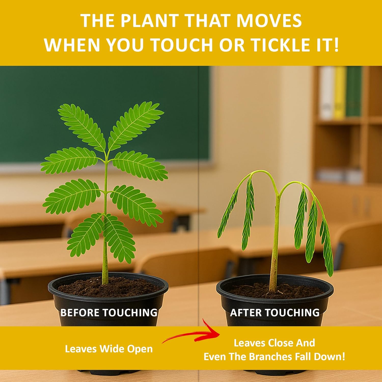 We offer a variety of products, including seeds, indoor gift grow kits, party favors, classroom kits, a care book, and much, much more—all designed to bring joy and fascination to your home. These plants respond to touch, offering a fun experience for nature lovers of all ages.